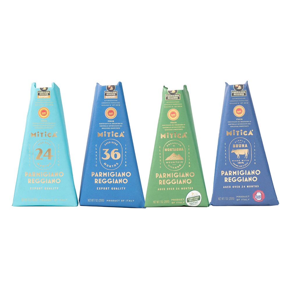 A full line of fixed weight Parmigiano Reggiano wedges: 24 Months, 36 Months, Montagna, and Disolabruna. Like our wheels, we source from a premium family of farms chosen for the flavor profile and quality of their cheese. This Parmigiano Reggiano is best in class – and looks as good as it tastes.